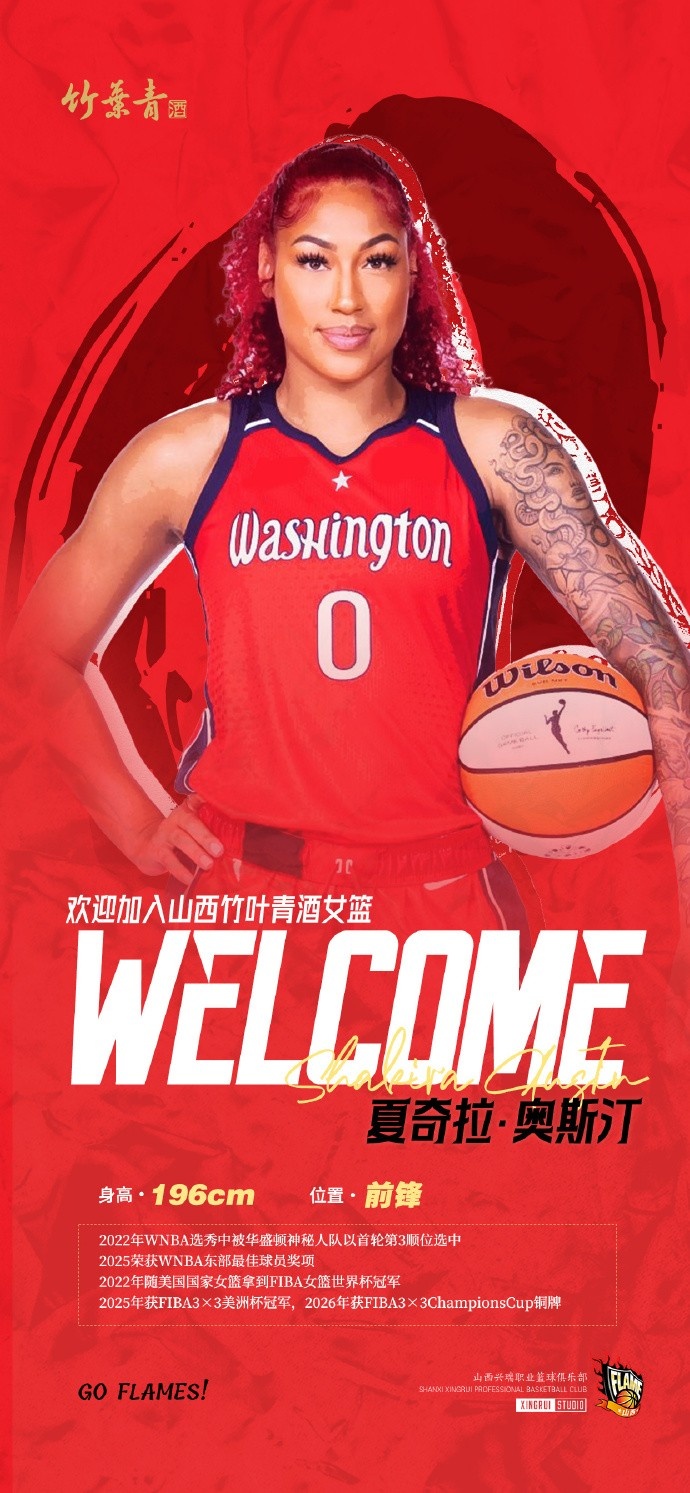 今天我们很高兴地宣布:美国女篮内线新星夏奇拉·奥斯汀(Shakira Austin)正式签约加盟山西竹叶青酒女篮,将身披0号战袍征战接下来的WCBA季后赛!